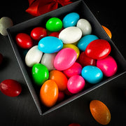 Kraukšķīgs vesels mandeļu rieksts, apvilkts ar maigu piena šokolādi un pārklāts ar košu, saldu cukura glazūru – īsts prieks gan acīm, gan garšas kārpiņām! Šīs krāsainās dražejas apvieno riekstu kraukšķīgumu, šokolādes samtaino maigumu un cukura glazūras saldeno noti, radot ideālu klasisku kombināciju.