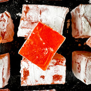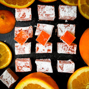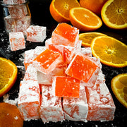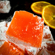 Aplesīnu lukums kubiņos - maigs un aromātisks saldums, kas bagāts ar apelsīnu garšu un aromātu. Ideāli piemērots baudīšanai kopā ar tēju vai kafiju. Delikatese nav pārāk salda un tai ir skaista oranža krāsa. Tekstūra ir maiga, nedaudz staipīga.