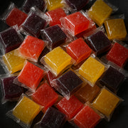 Košļājamās konfektes MIX - mango, zemenes, vīnogas, ķirši, ananāsi, citroni, apelsīni, persiki, avenes un mellenes. Mēs pievienojam miksā tās garšas, kuras ir pieejamas uz pasūtījuma brīdi, tāpēc garšas mēdz būt arī mazāk nekā desmit, jo ir uzskaitītas visas iespējamās.