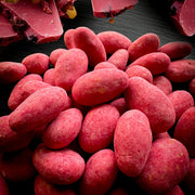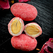 Kraukšķīgas mandeles rozā šokolādē ar aveņu garšas noti