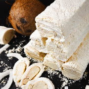 Sastāvs: cukurs, glikozes sīrups, kukurūzas ciete, baltā šokolāde, kokosrieksts
