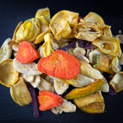 Košs un kraukšķīgs žāvētu dārzeņu mikss no banāniem, burkāniem, batātes, džekfrūta, taro un purpura jamas. Dabiski salds un bagāts garšās — lieliski piemērots kā veselīga un garšīga uzkoda jebkurā laikā.